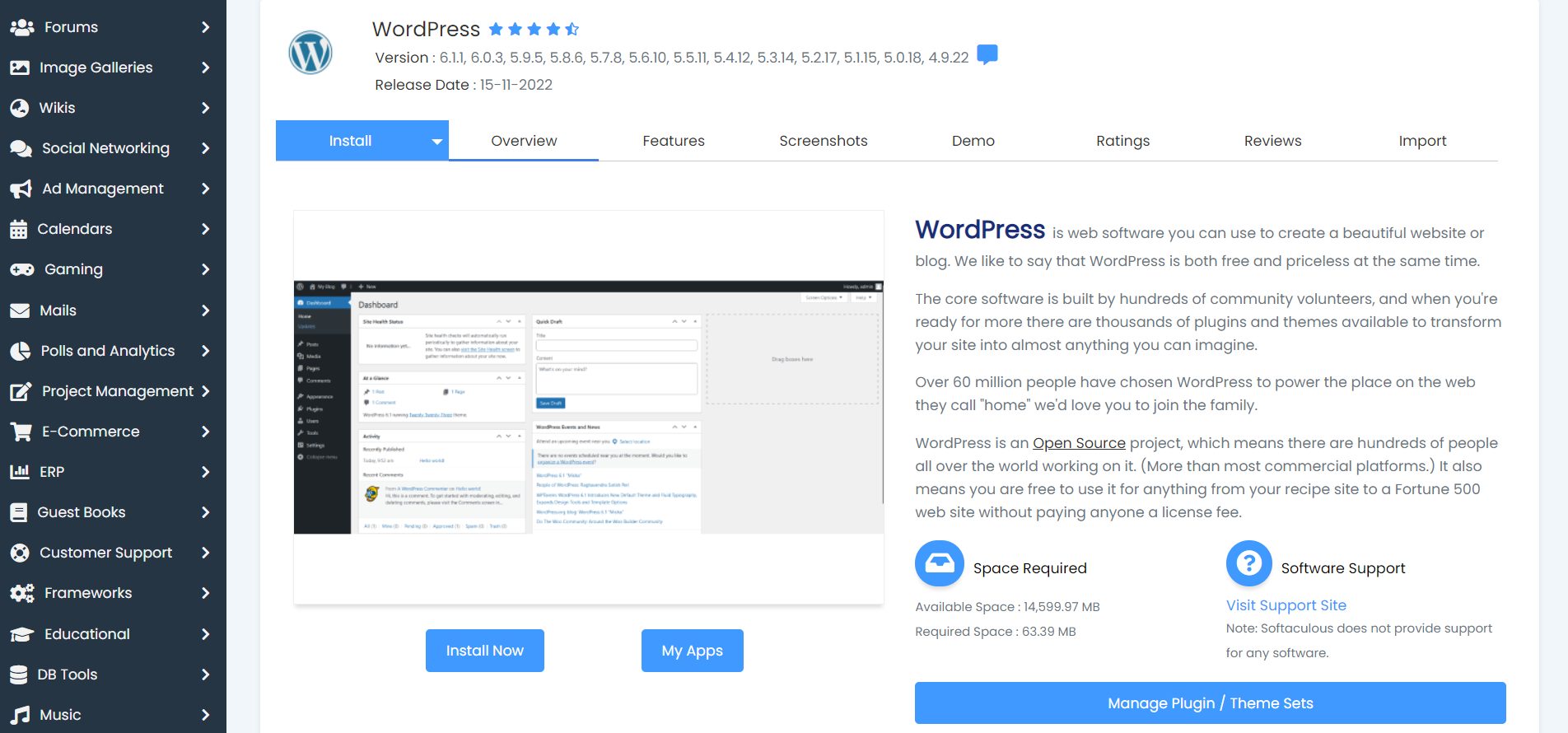 * 가입 시 자동으로 워드프레스가 사전 설치되는 호스팅도 많음