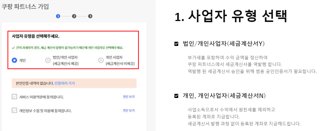 1. [사업자 유형]을 선택