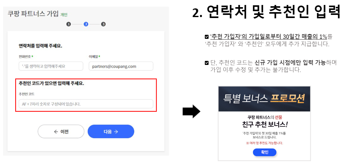 2. 추천인 코드를 입력.
