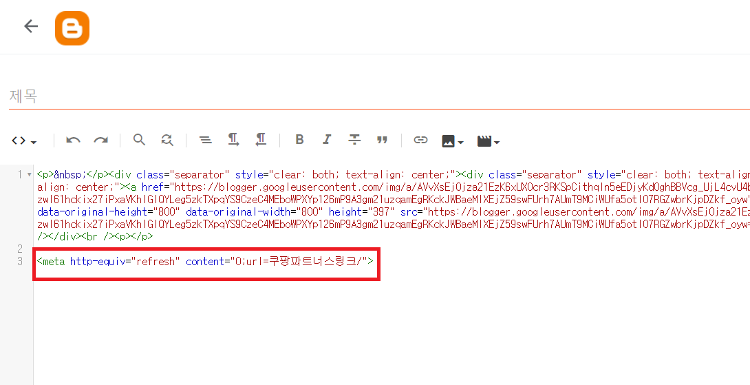 <meta http-equiv=”refresh” content=”0;url=쿠팡 파트너스 링크/”>