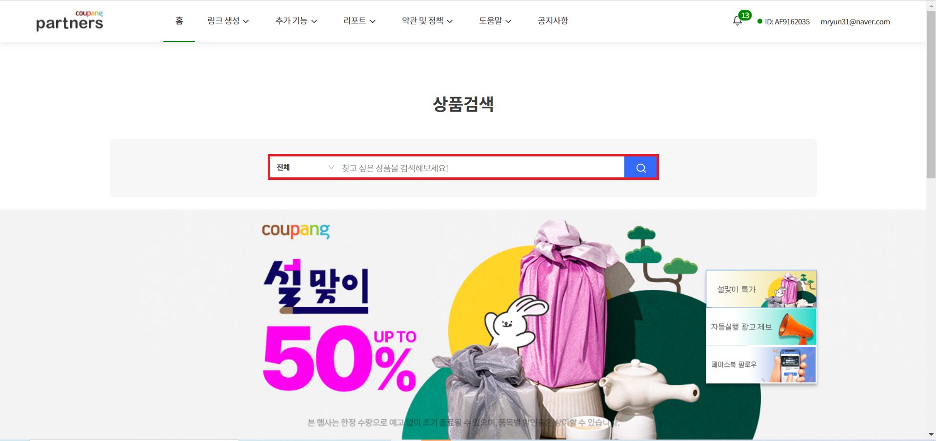 제품을 홍보할 플랫폼이 있다면, 그 다음엔 쿠팡 파트너스 아이디가 필요하다.
